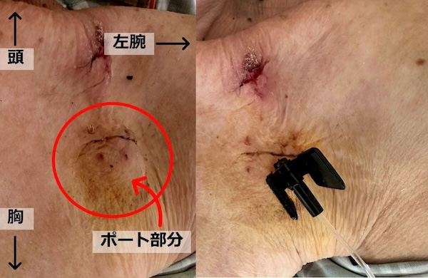 | 主な合併症 | 血栓、静脈炎、カテーテル閉塞、自己抜去 | 気胸、動脈穿刺、血腫、血栓、感染 | ポート部位の感染、カテーテル閉塞、穿刺困難、皮膚潰瘍 |